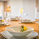 - ❓Is there a kitchen available at the apartment for guest use?Yes, the apartment is furnished with a fully-fitted kitchen and offers coffee and tea makers, a toaster, and kitchenware as well.